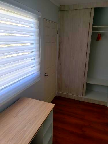 Habitación amplia, amoblada con cama de 1 1/2 plazas, estación de trabajo y comedor de diario. Equipada con espacioso clóset y baño privado.