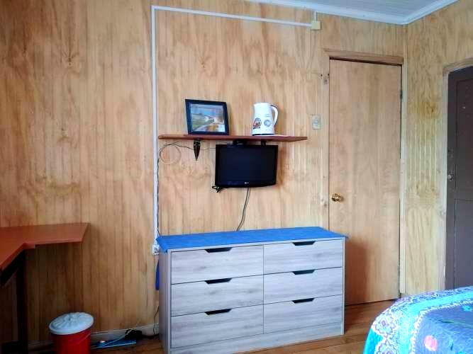 - Incluye: Cama, velador, lámpara, espejo, repisas, mesa, silla, cómoda (6 cajones), TV cable, hervidor, closet independiente y calefactor a gas.