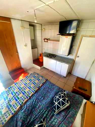 Esta equipado con cama de 2 plazas, frigo bar, cocina