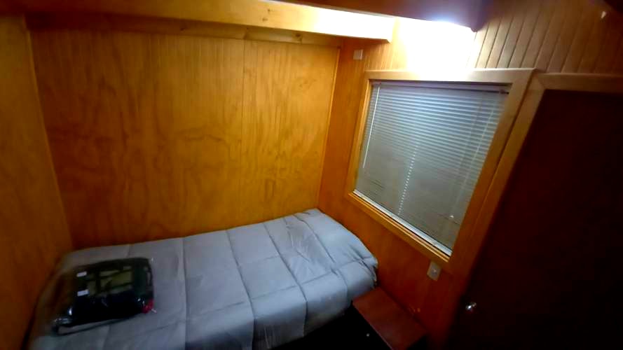 pieza con acceso individual, con cama de una plaza, velador, cajonera y closet.Areas comunes; 2 baños, lavandería y cocina equipada