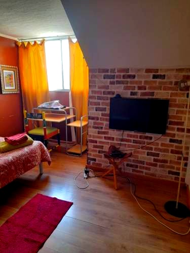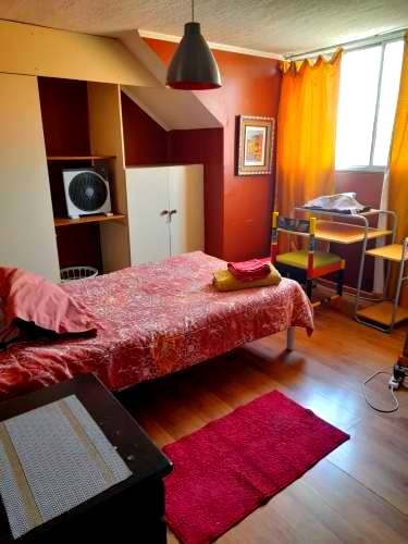 Habitacion amoblada escritorio, -estufa a gas,, en invierno y ventilador verano -wifi -,neflix-.PARA PERSONA Q TRABAJE,-derecho cocina y refrigerador, para guardar lo perecible--lavadora 1 vez x semana- sirve todo colectivo ,de letrero color verde le sirve sin importar el número. 2 y media poniente casi 12 norte. El baño se comparte con 1 persona a 13 cuadras plaza de armas.,-tiene acogedora terraza para primavera verano.Esta en seg piso y alli tiene 2 habitaciones y el baño.