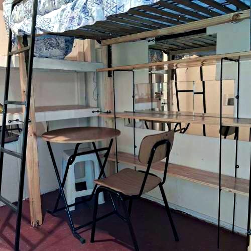 $160.000.- A persona sola. 1 ambiente baño individual ADENTRO, con entrada independiente. Patio 2do piso y techado. Cama tipo camarote (ver si le sirve bien)… Se incluye en valor solo el AGUA. Se cobra la LUZ aparte, con remarcador individual consumo 100% individual. En Pje. ilo # 6432. Sector a 2 cuadras de Mall Plaza Vespucio (altura por las terrazas o mercado del 14) y 1 del hospital de la florida . metro Macul queda cerca a pie , igual metro vicuña Mackenna.