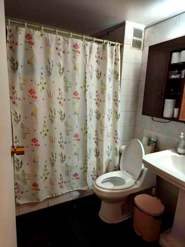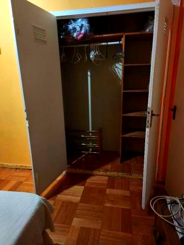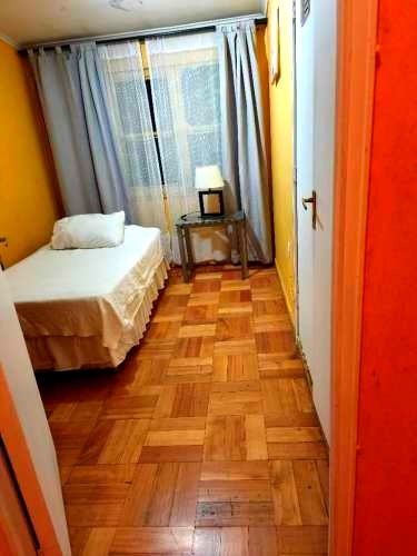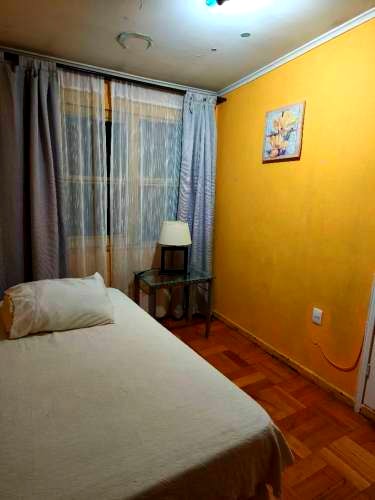 La habitación cuenta con cama y ropa de camw,closet ,cómoda televisor,velador con lámpara baño compartido cerca de Américo Vespucio con Isabel la católica a 1 cuadracocina con todos los implementos