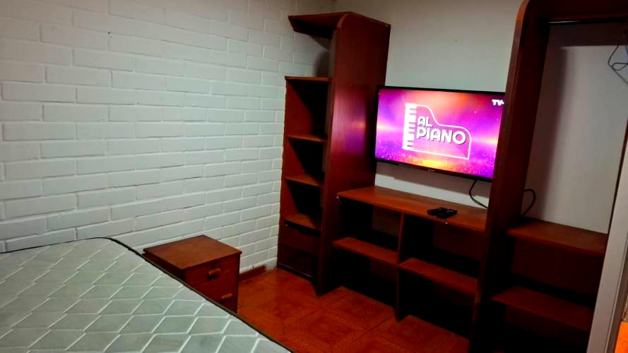 La habitación cuenta con cama box spring plaza y media, closet y tv. leed.