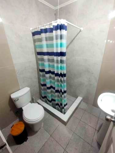 Es una casa que tiene 6 habitaciones y 2 baños, cada 3 personas comparten 1 baño .