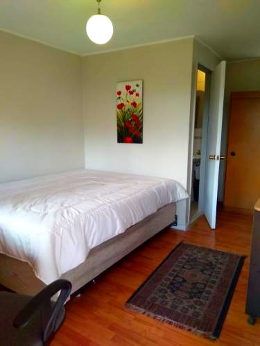 Se arrienda habitación con baño privado, El valor de arriendo para una persona es de $300.000.- y para pareja es de $390.000.- El Canon de arriendo Incluye; servicios básicos (Luz, agua y gas), uso de lavadora y Wi-Fi. Se comparte; cocina equipada, sala de estar, terraza amoblada., casi 700 mts de jardín y una hermosa vista panorámica de Santiago. Cuenta con portón automático. Estacionamiento según disponibilidad. Está ubicada en Alto Peñalolén a 300 mts. de Universidad SEK y a 1000 mts., de Universidad Adolfo Ibáñez.