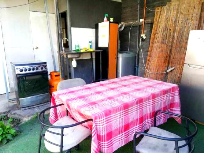 Pieza con gimnasio en patio, en calle Piramide, a dos cuadras de calle Departamental y a pasos de TranSantiago Santa Rosa. Solo para varón. Incluye WiFi, TV cable, luz, agua y Gas en duchas y cocina, además refrigerador y lavadora. Cerca de Supermercados y negocios. Excelente conectividad.