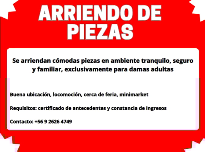 Arriendo Piezas con baño y lavaplatos, y piezas sin baño con espacios compartidos, zona tranquila, buena locomoción, cercana a ferias, minimarket santa rosa y gran avenida, calle Uruguay en la Comuna de San Ramón