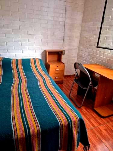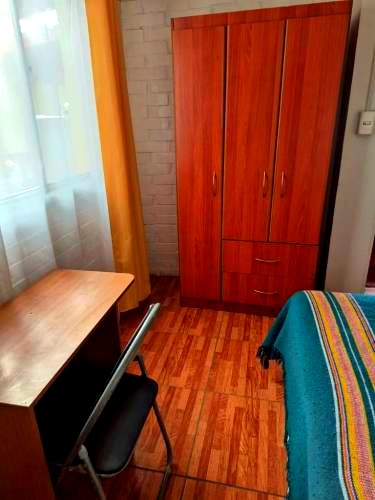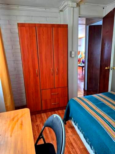 Se arrienda pieza en casa habitación. Cama, closet, velador y escritorio con silla. Baño compartido con otra persona. Derecho a cocinar y lavar.